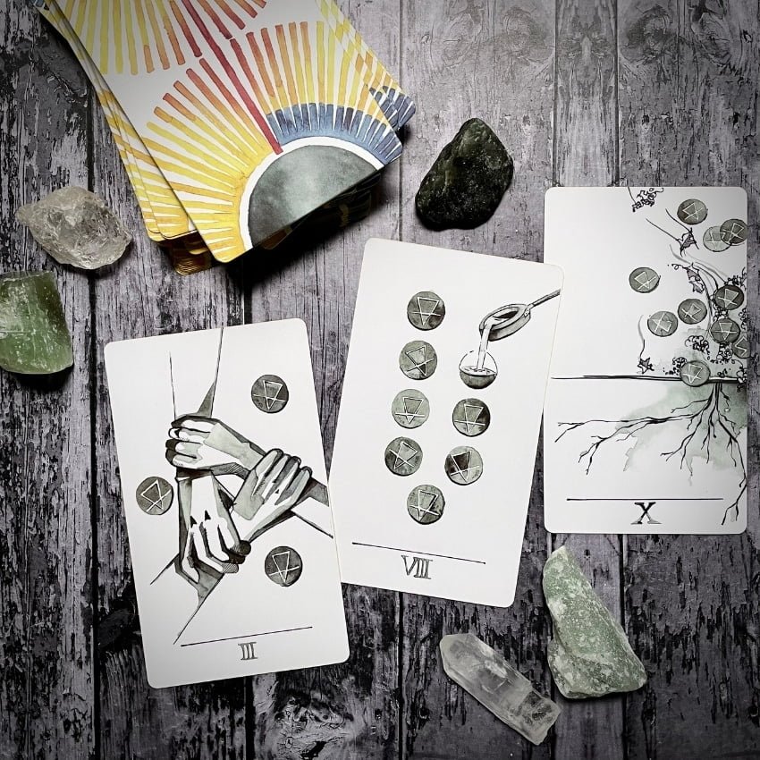 The pips The Pentacles suit (or numbered cards) show us several ways to learn and understand this energy – from making long-term plans to being ready to adapt when things don’t go our way.