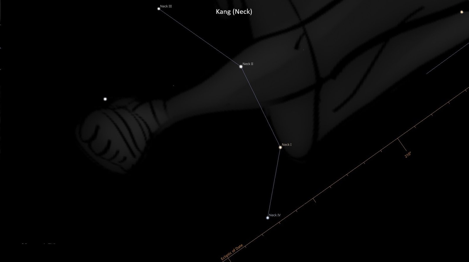 From 15♎12 to 15♏27, the second Chinese Moon House sign is Kang Su, the “House of the Neck”. It is the second of the seven palaces of the Azure Dragon of the East. The first star sign of the Palace of the Neck is also called Kang, “Neck”. It represents the neck of the Azure Dragon and consists of 4 stars (…)