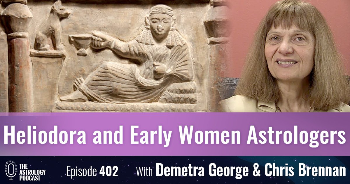 In episode 402, Demetra George joins the podcast to discuss the recent discovery of Heliodora, the oldest female astrologer from the Hellenistic tradition, and the early history of women in astrology.