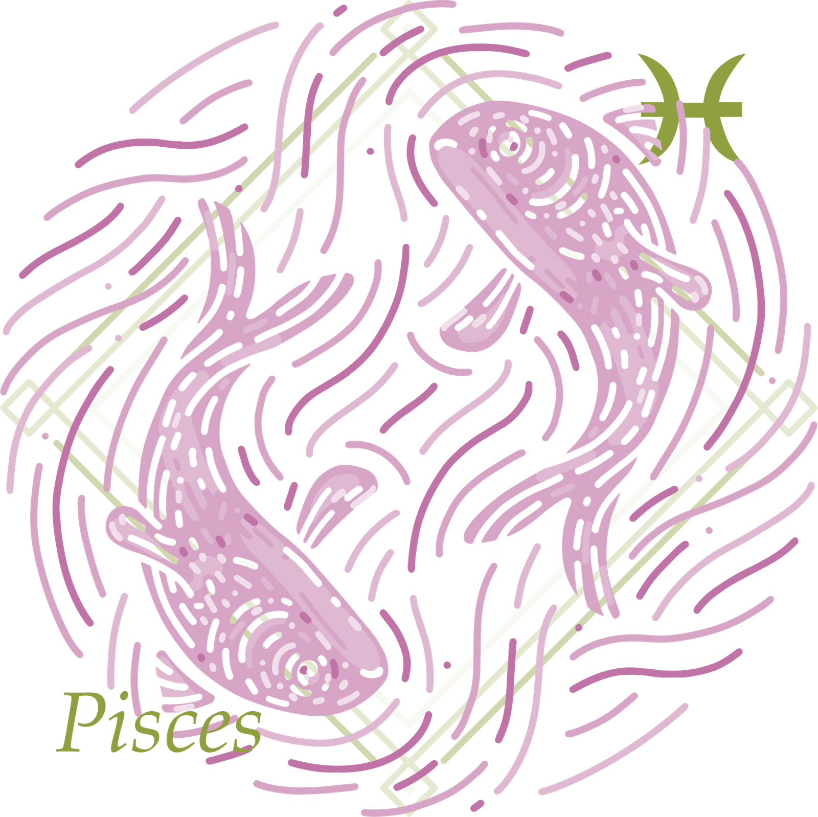 A pink image of two fish swimming in opposite directions with the symbol and word pisces inside a green diamond-shaped frame "Fish"You take little at face value and are always looking for hidden meanings or deeper insights into the people and situations in your life. You are usually very calm and charming, and you have a knack for coming up with money-making ideas and creative marketing projects. Periods of solitude are vital to your well-being, as quiet time is how you refresh yourself.