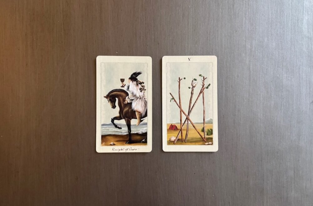 Knight of Cups and Five of Wands