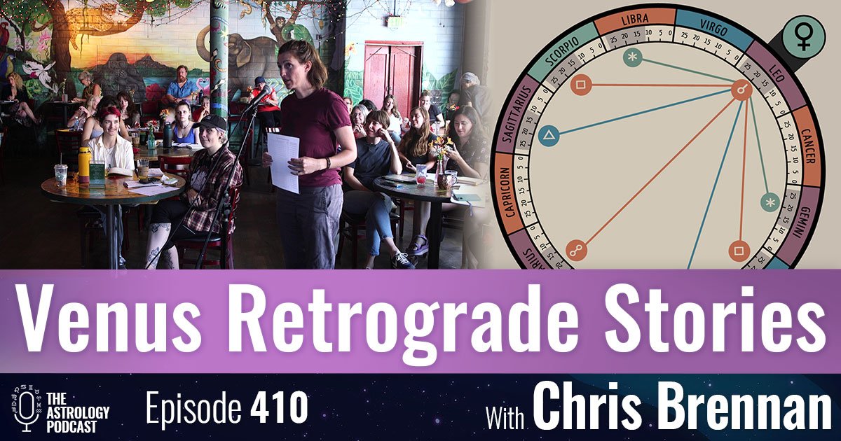 Episode 410 is a seminar led by Chris Brennan in which members of the Denver Astrology Group share stories of how past Venus retrograde transits have manifested in their lives.