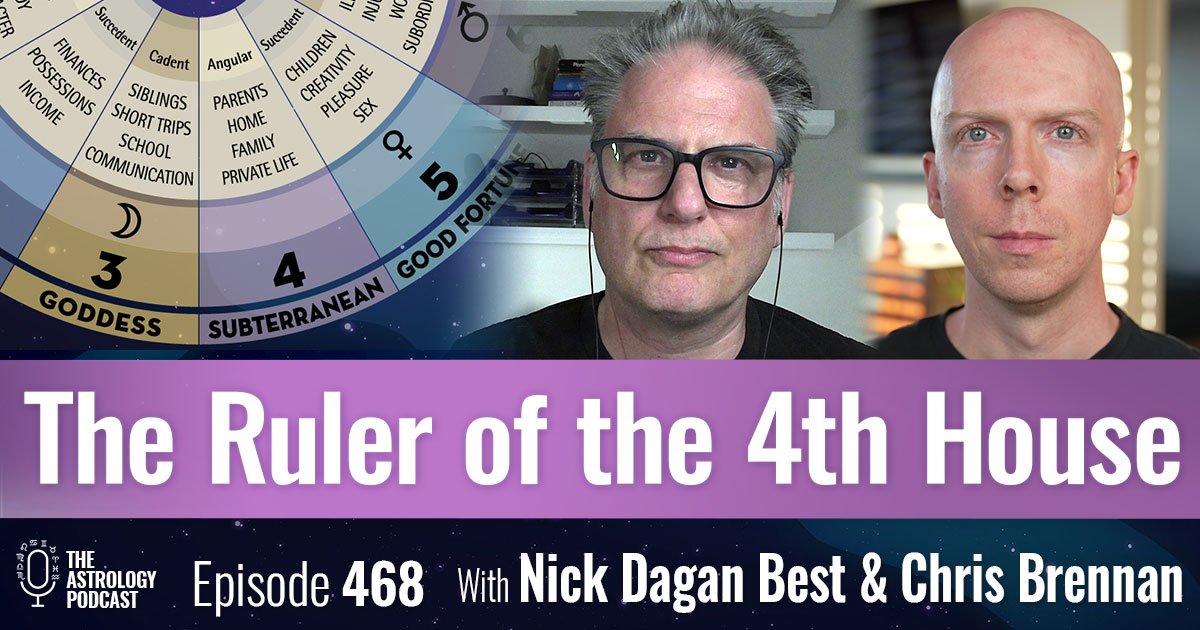 In Episode 468, astrologers Chris Brennan and Nick Dagan Best discuss what it means when a 4th house ruler is placed in each of the 12 houses in a natal chart.