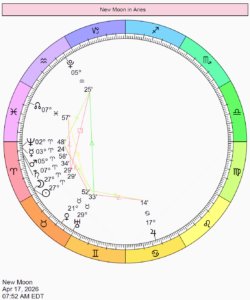 | April 17 | 7:52 a.m | New moon in Aries | 27 Ari 29′ |